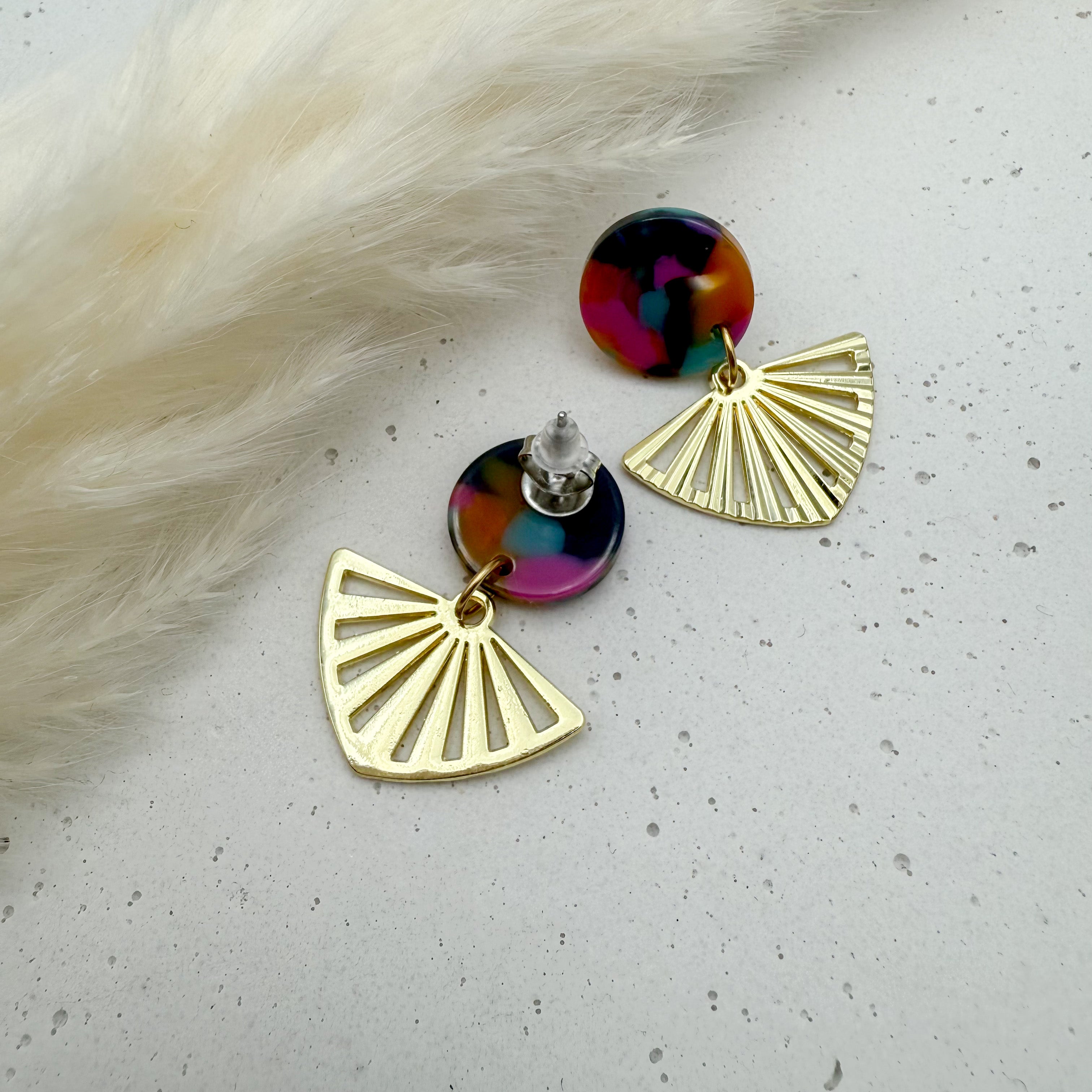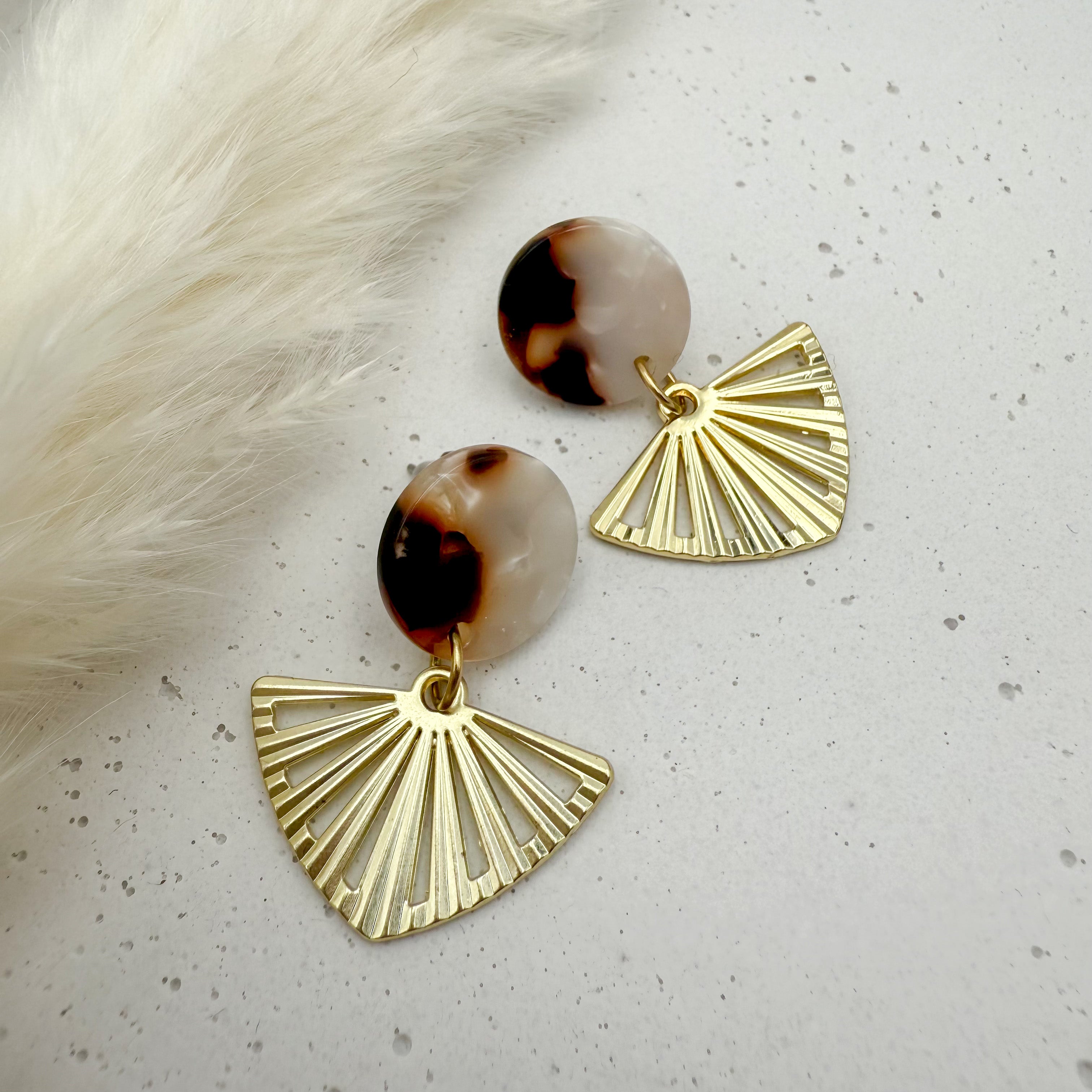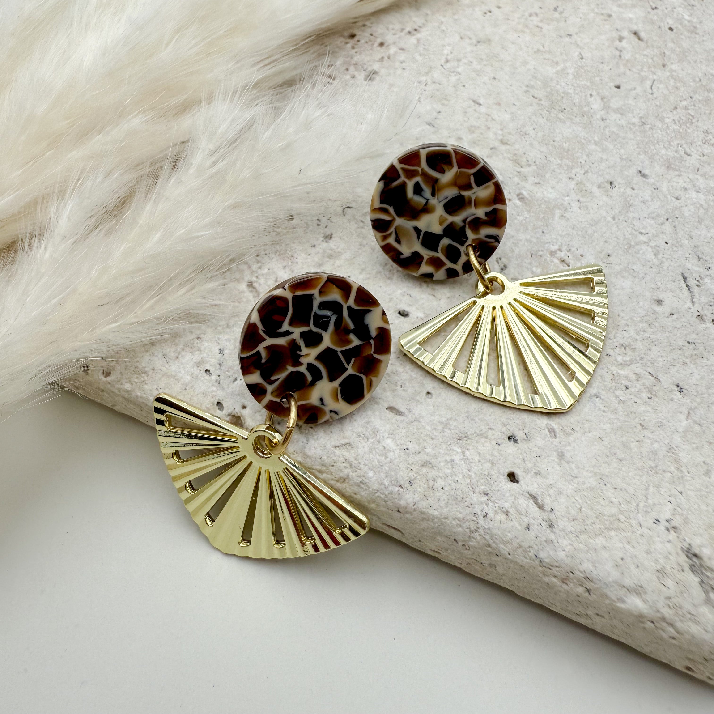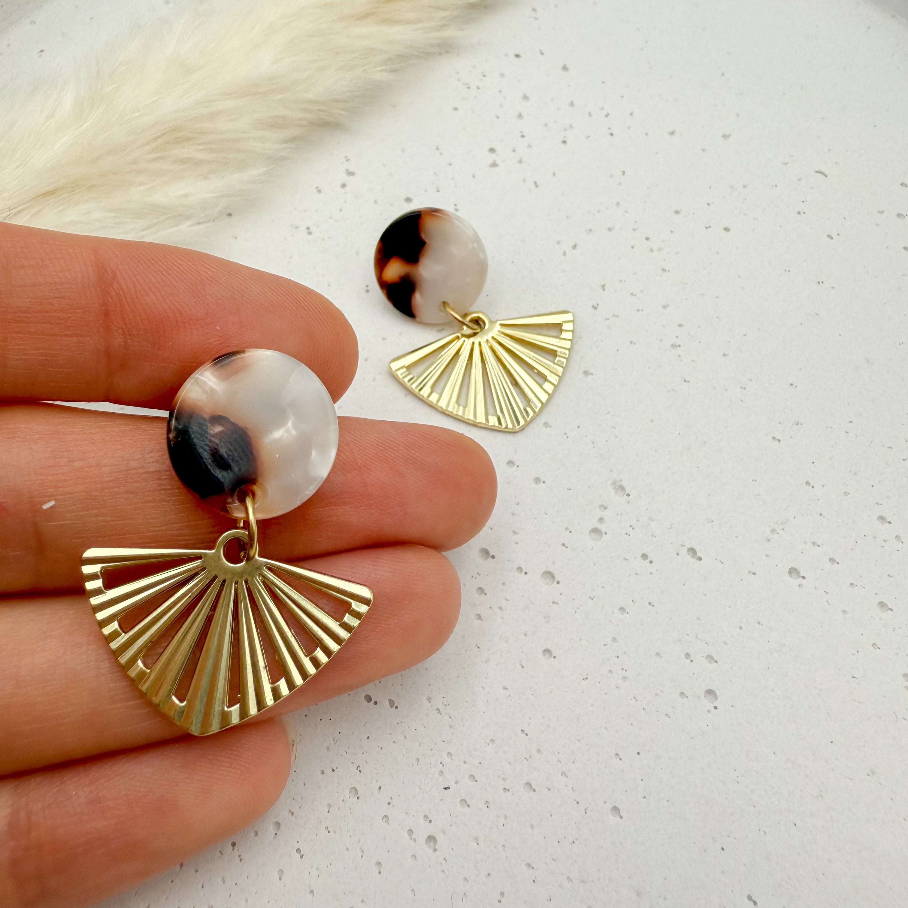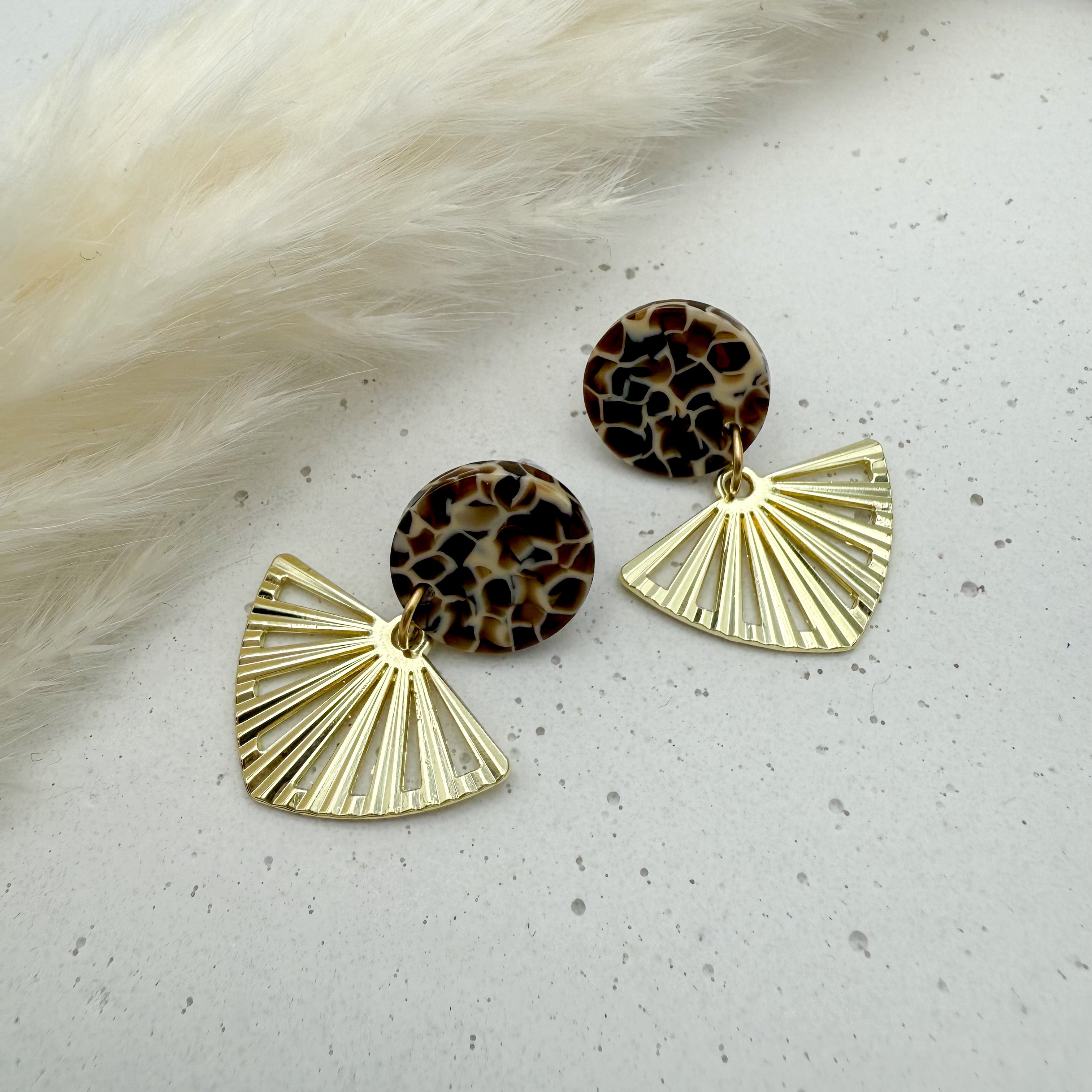 Stilvolle Ohrstecker Niva mit Kopfteil aus Acetat und Anhänger aus vergoldetem Messing von Vagabundobjects.