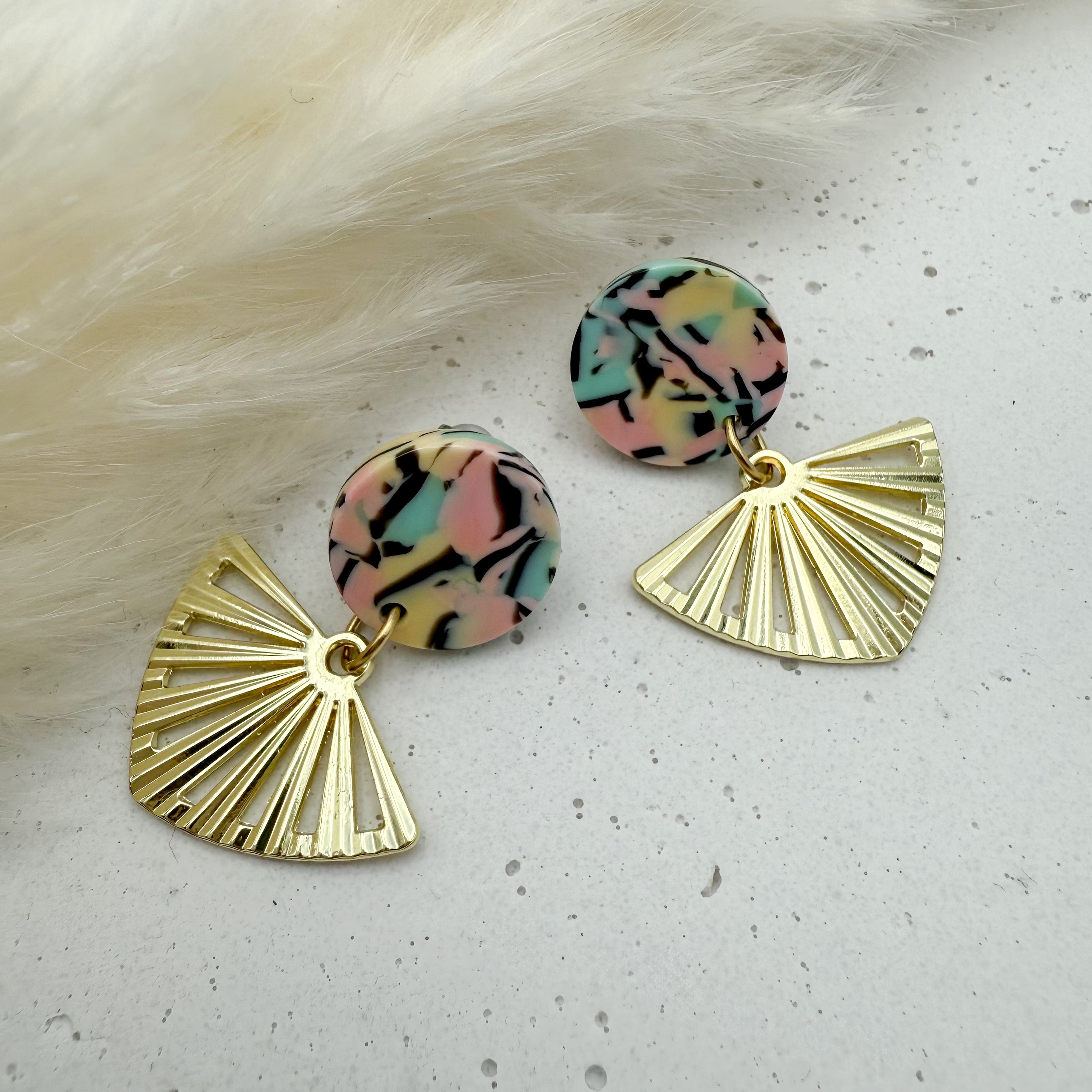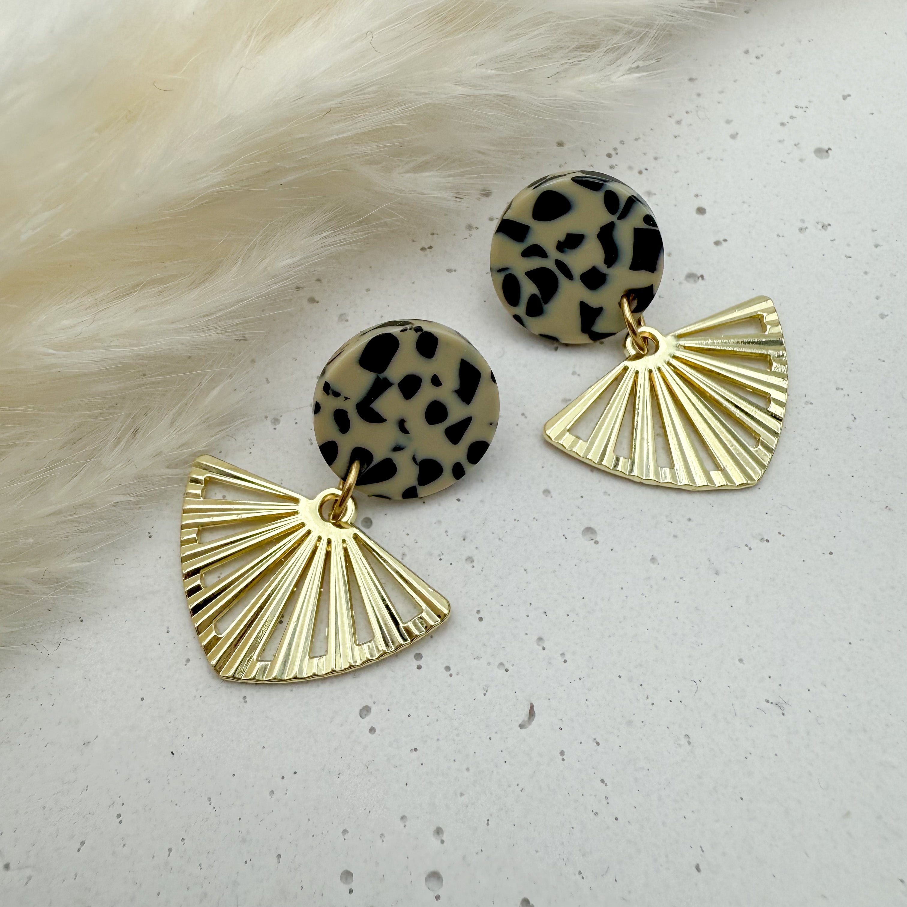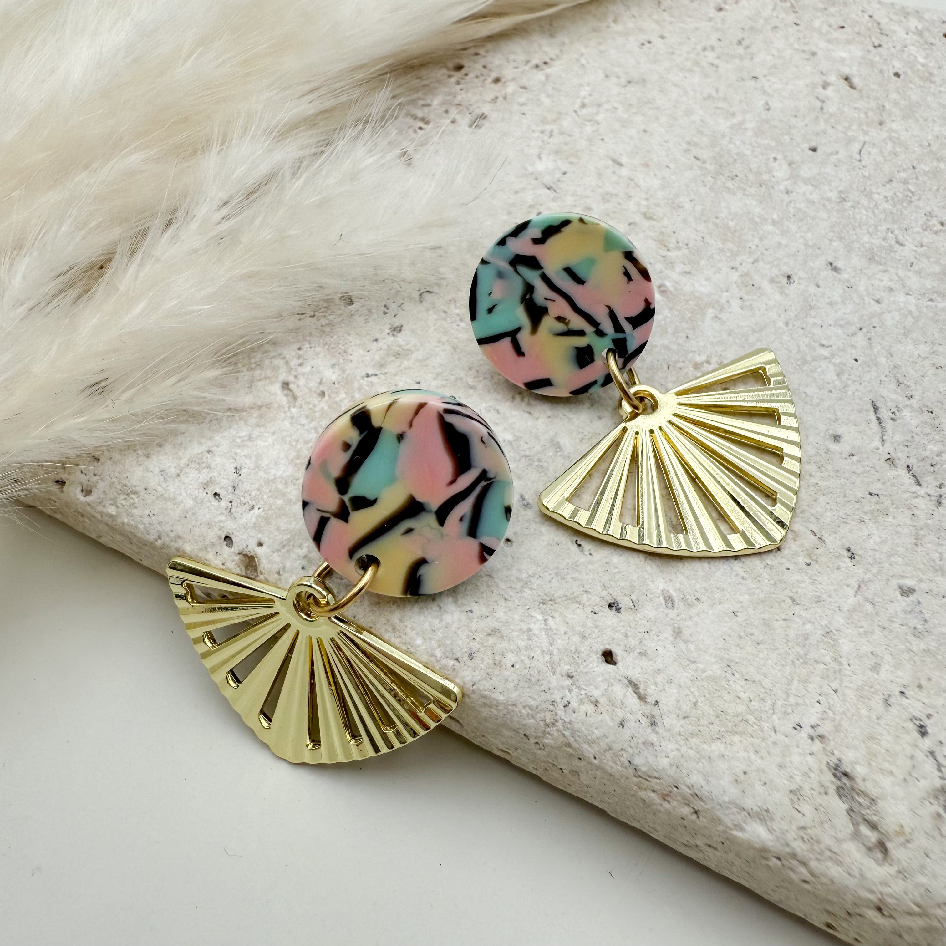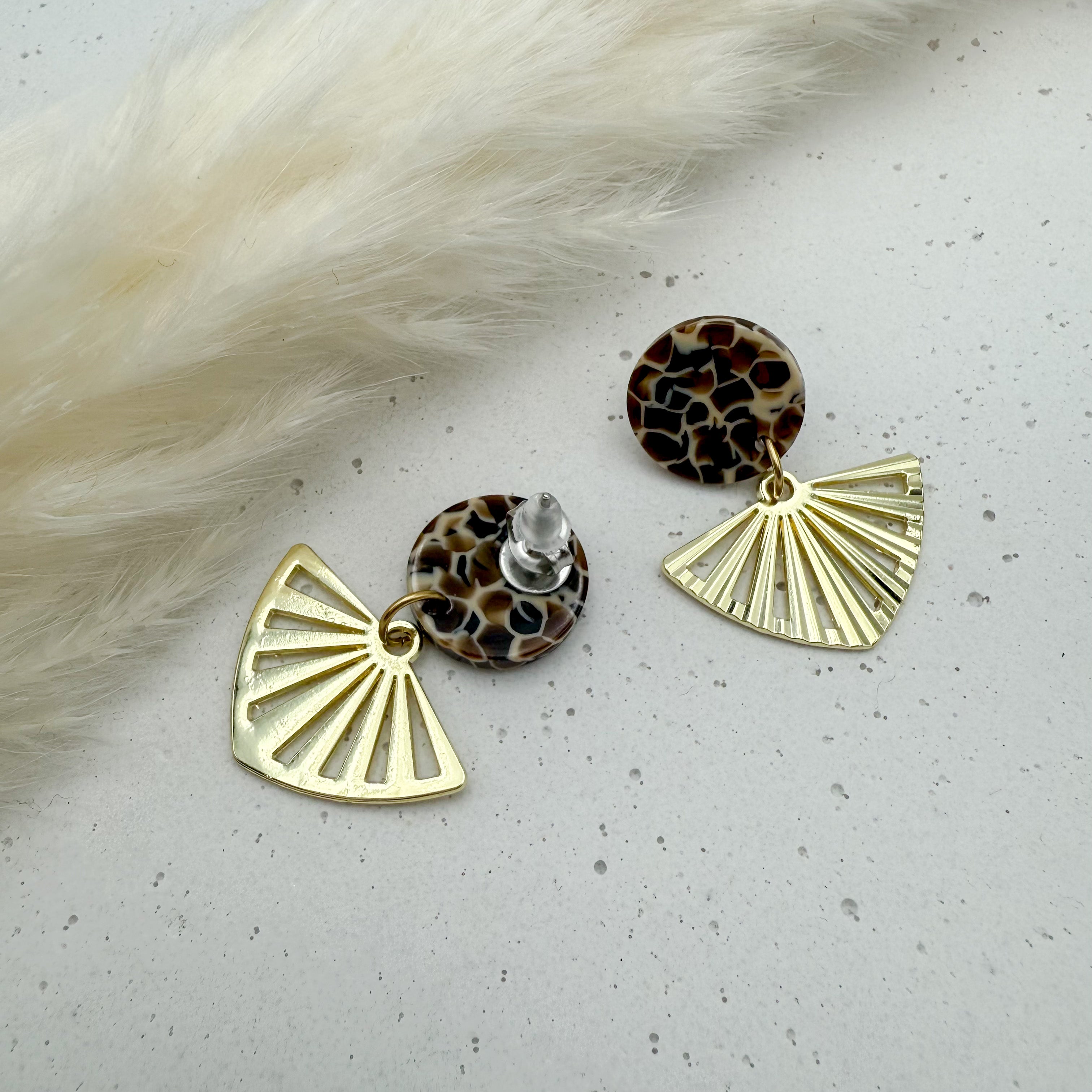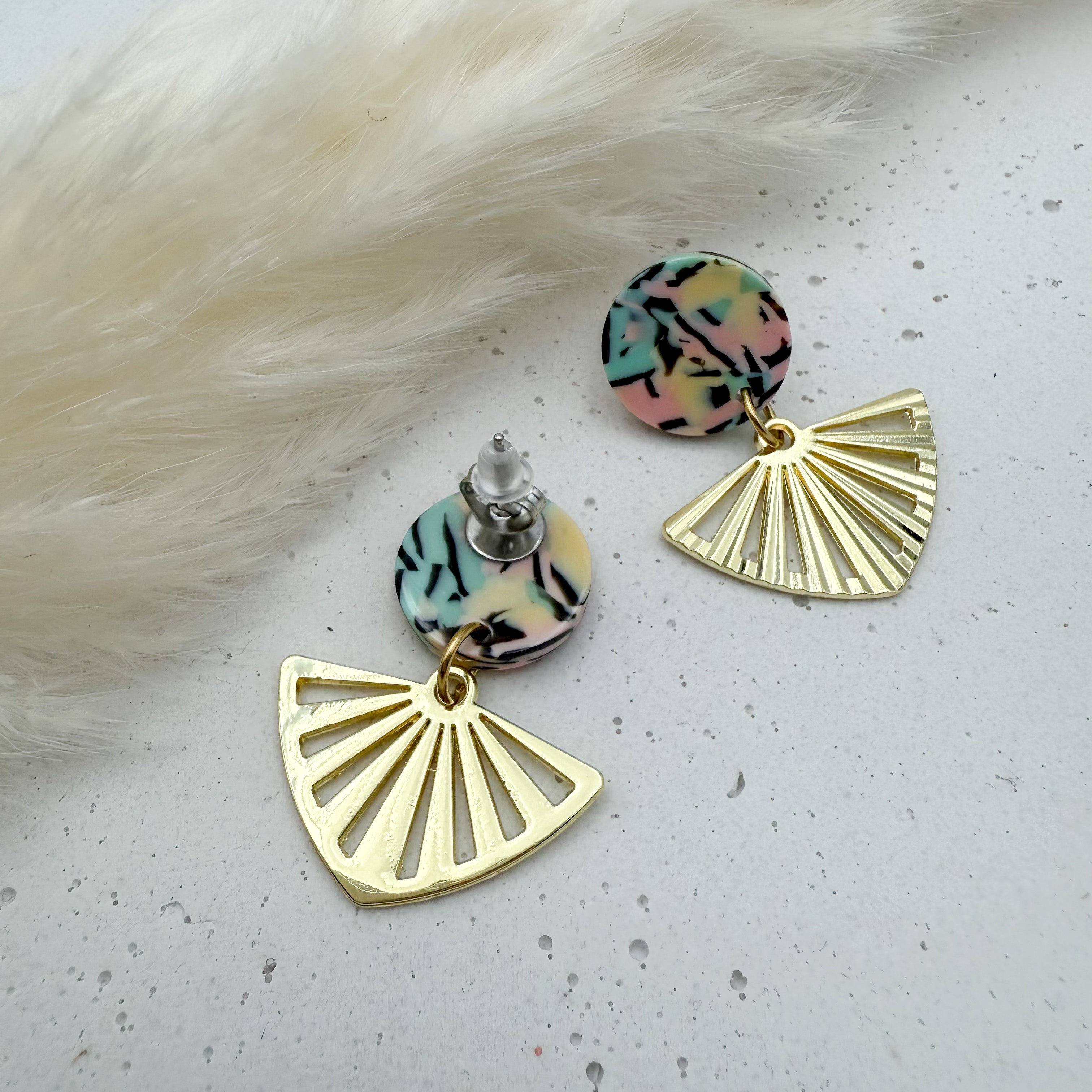 Stilvolle Ohrstecker Niva mit Kopfteil aus Acetat und Anhänger aus vergoldetem Messing von Vagabundobjects.