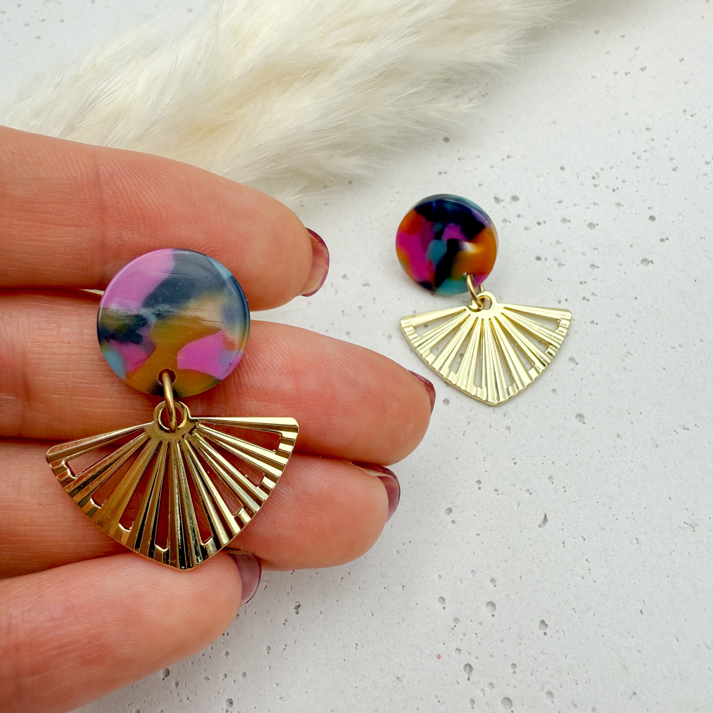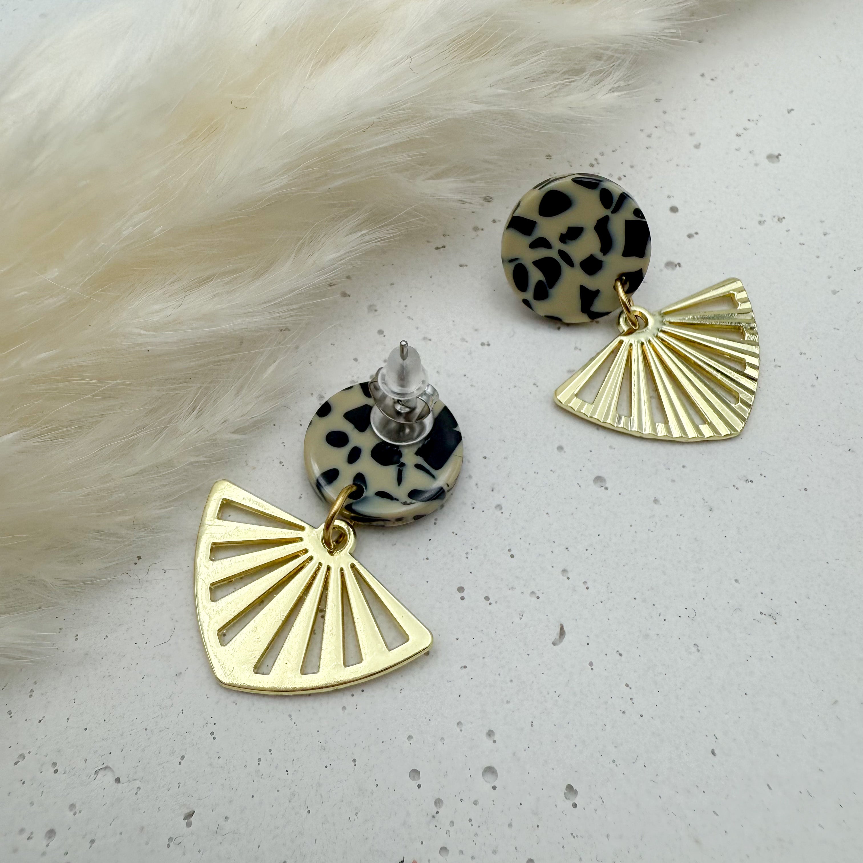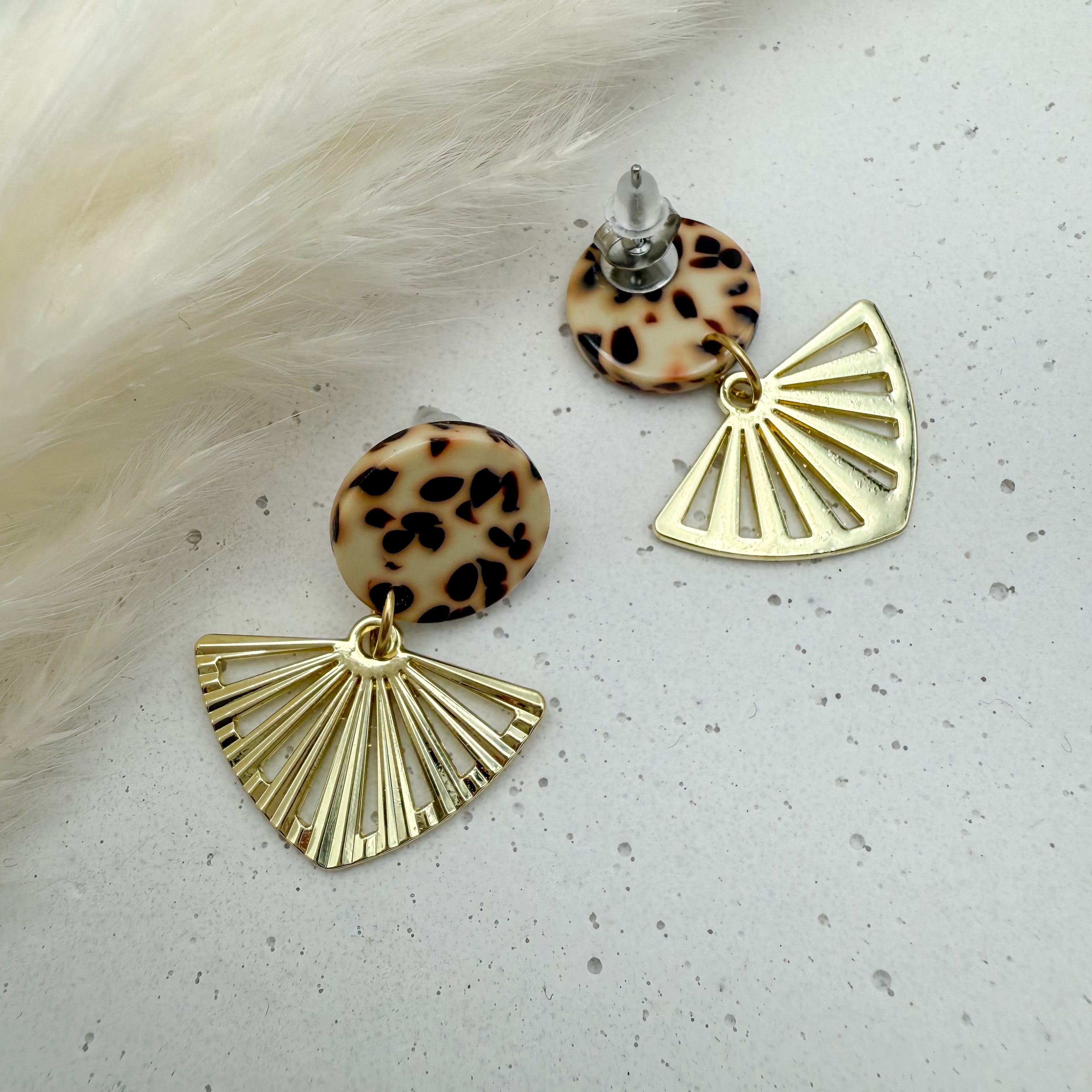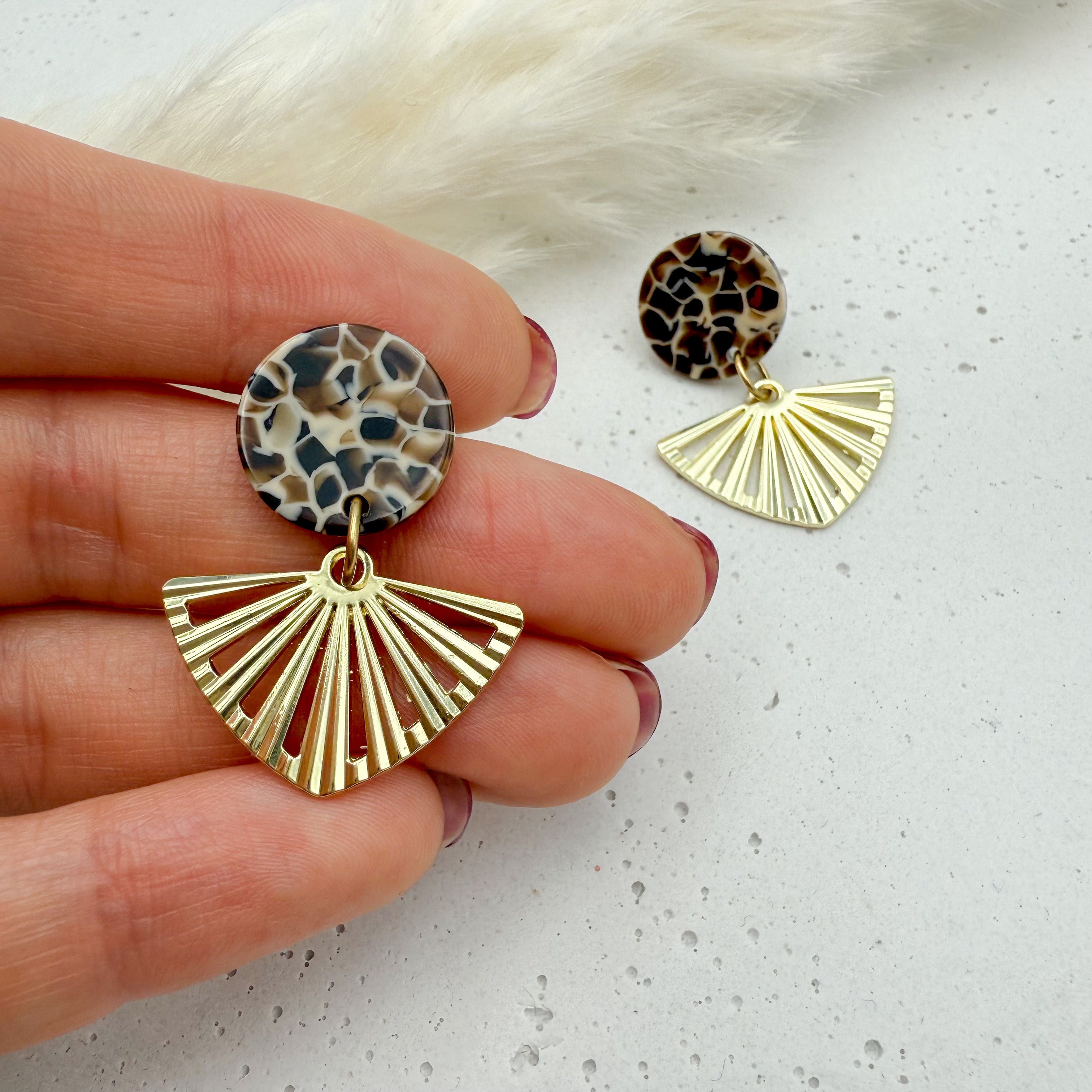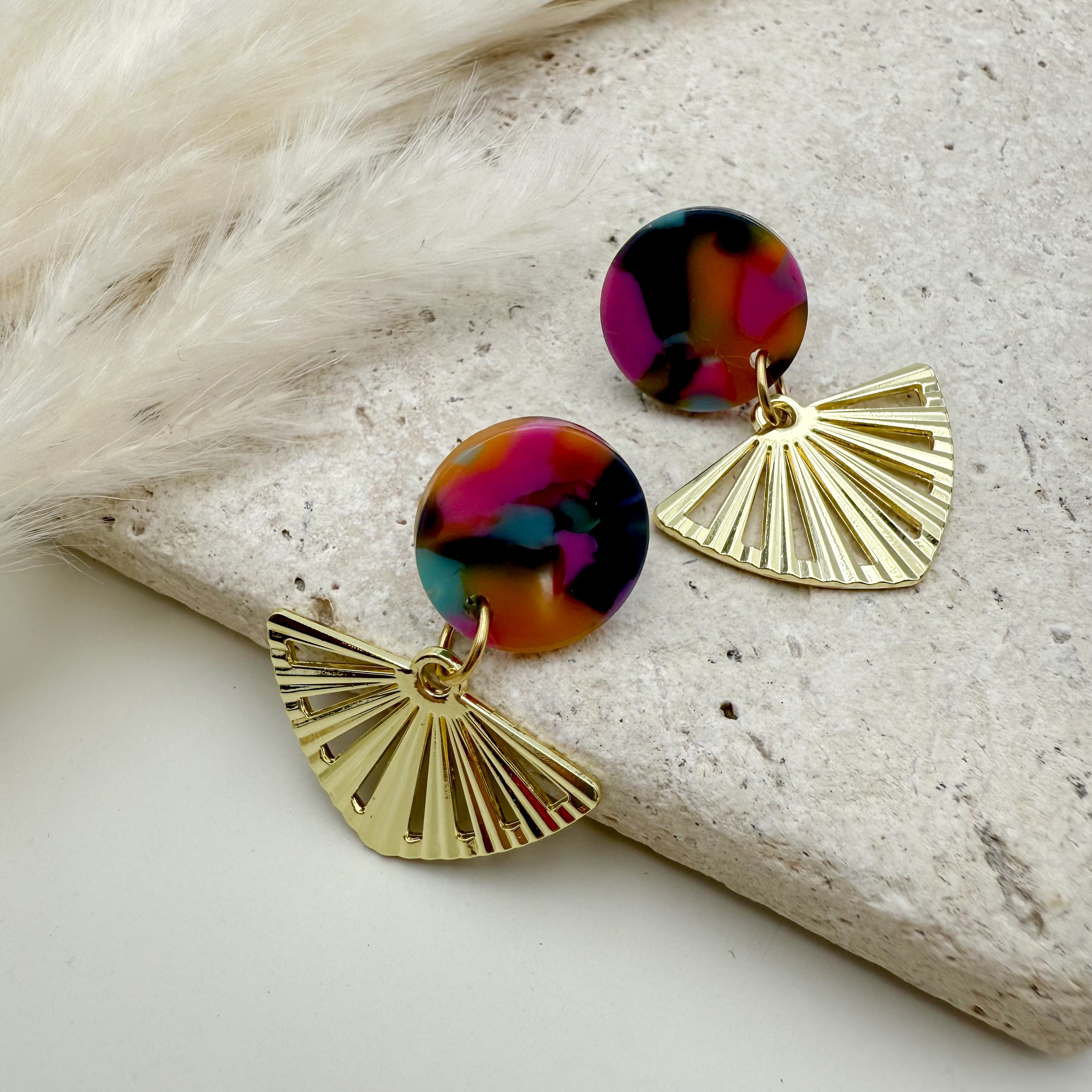 Stilvolle Ohrstecker Niva mit Kopfteil aus Acetat und Anhänger aus vergoldetem Messing von Vagabundobjects.