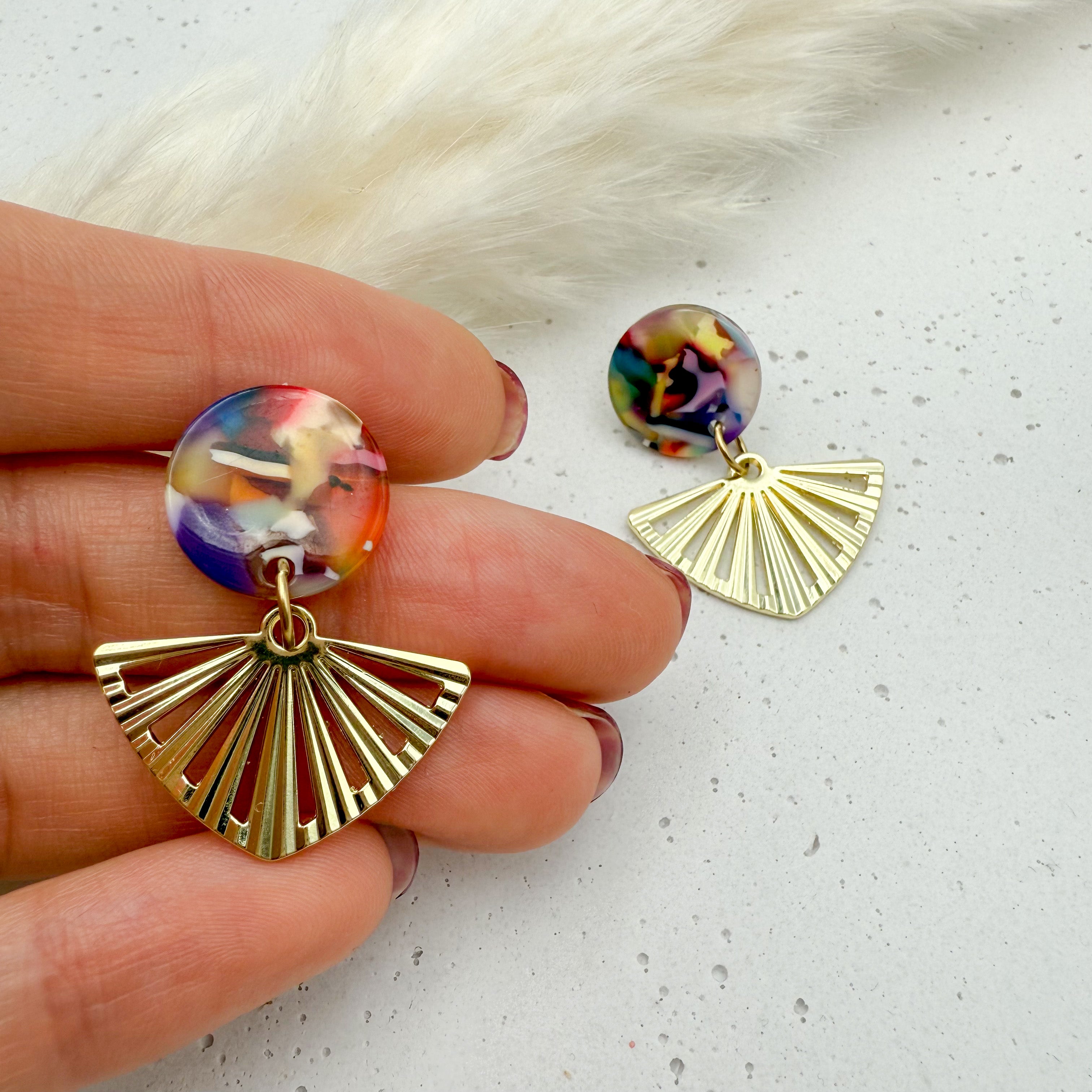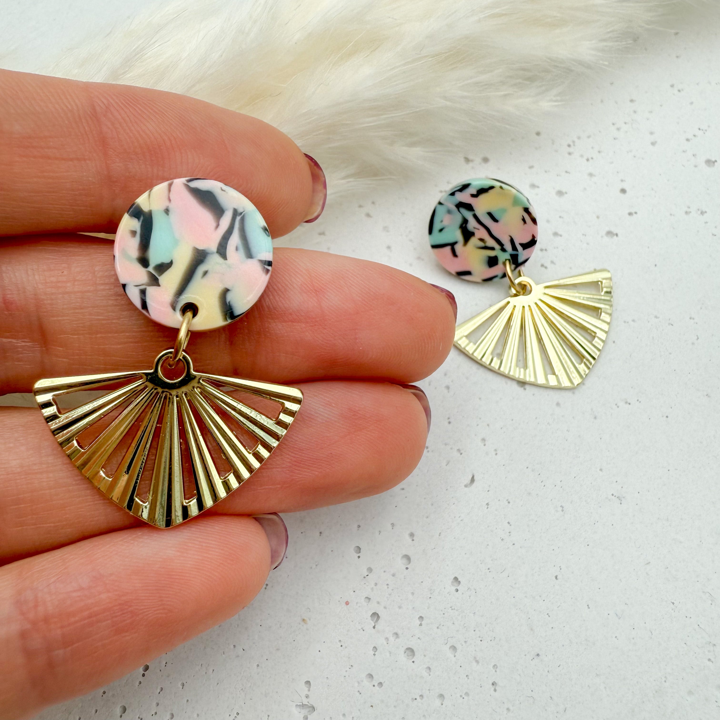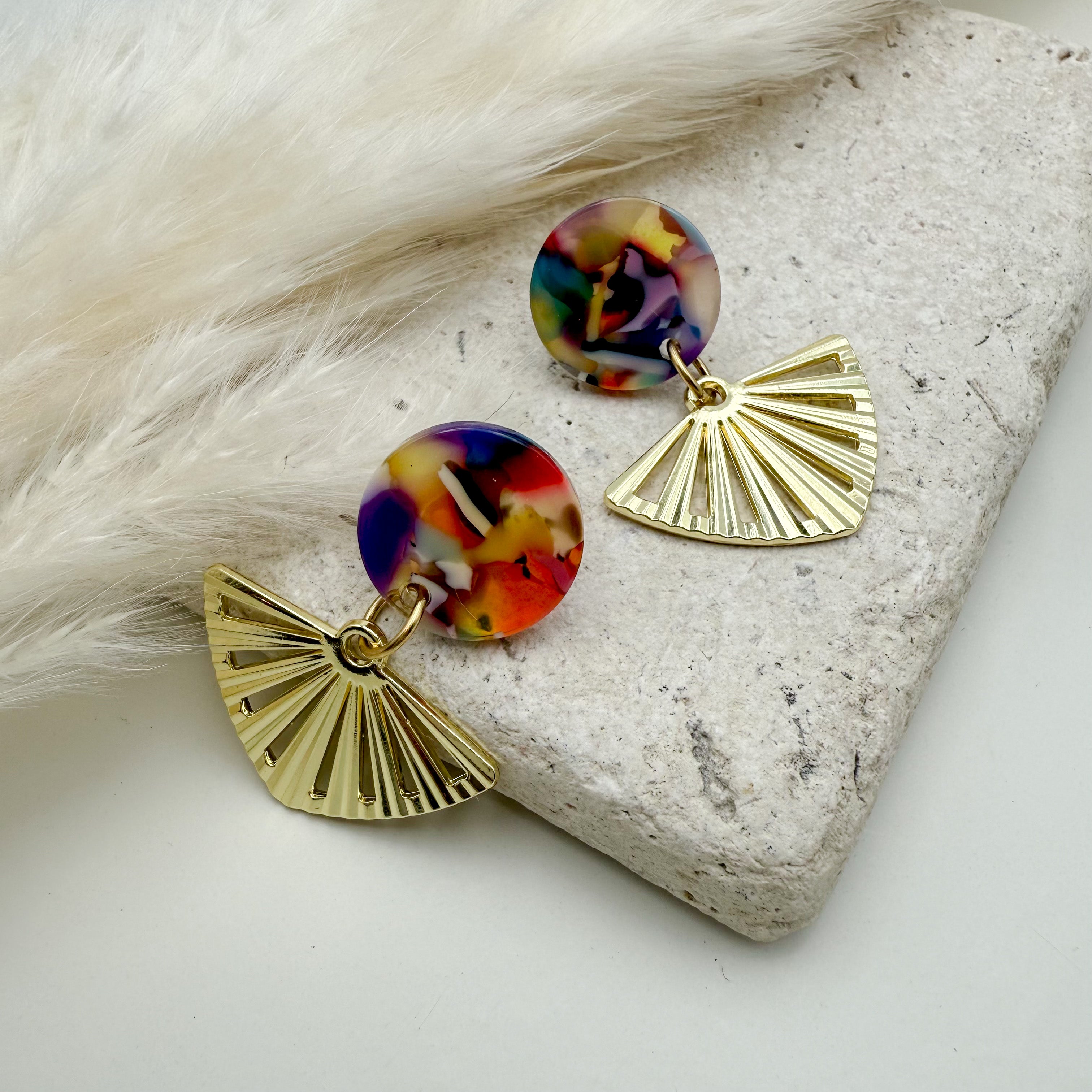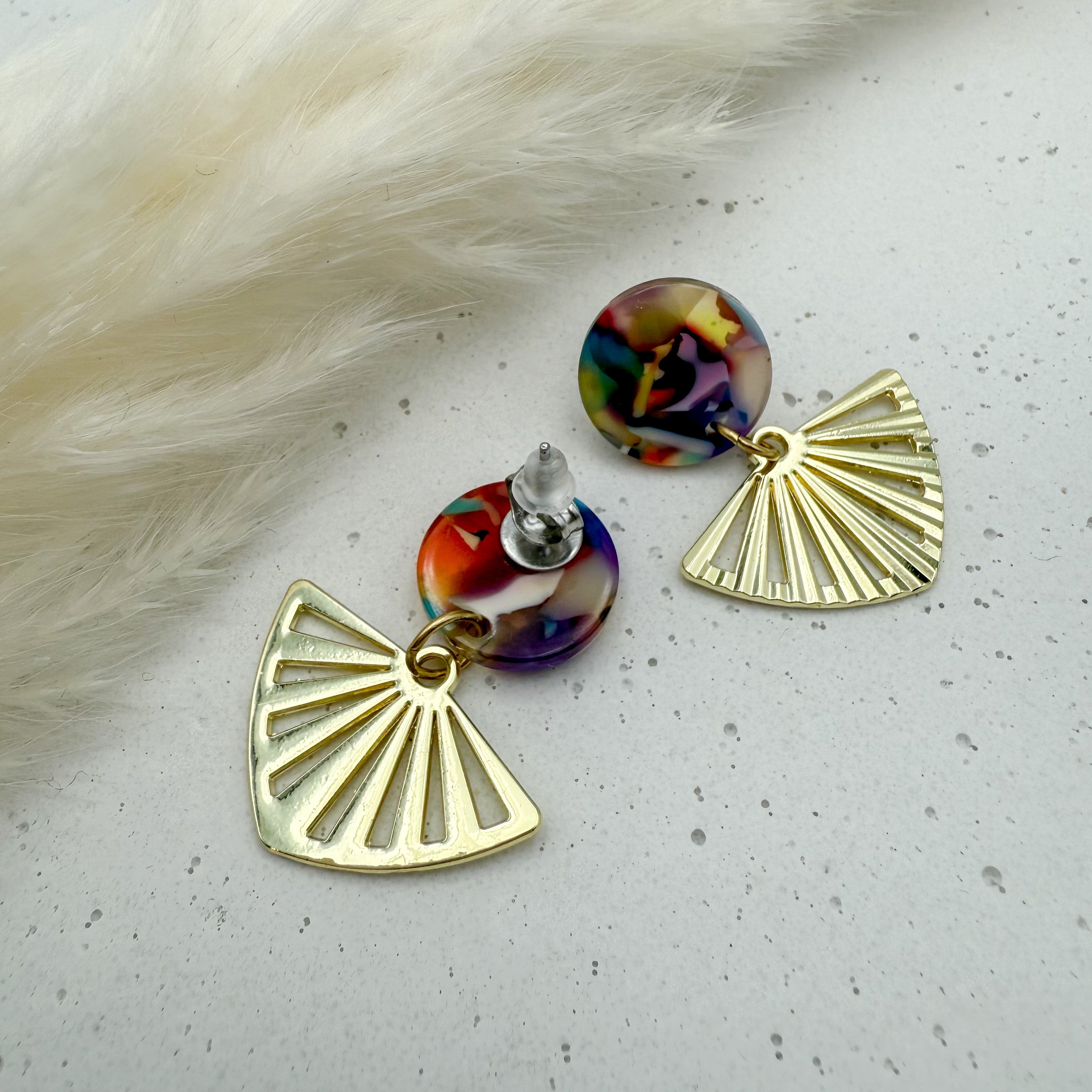 Stilvolle Ohrstecker Niva mit Kopfteil aus Acetat und Anhänger aus vergoldetem Messing von Vagabundobjects.