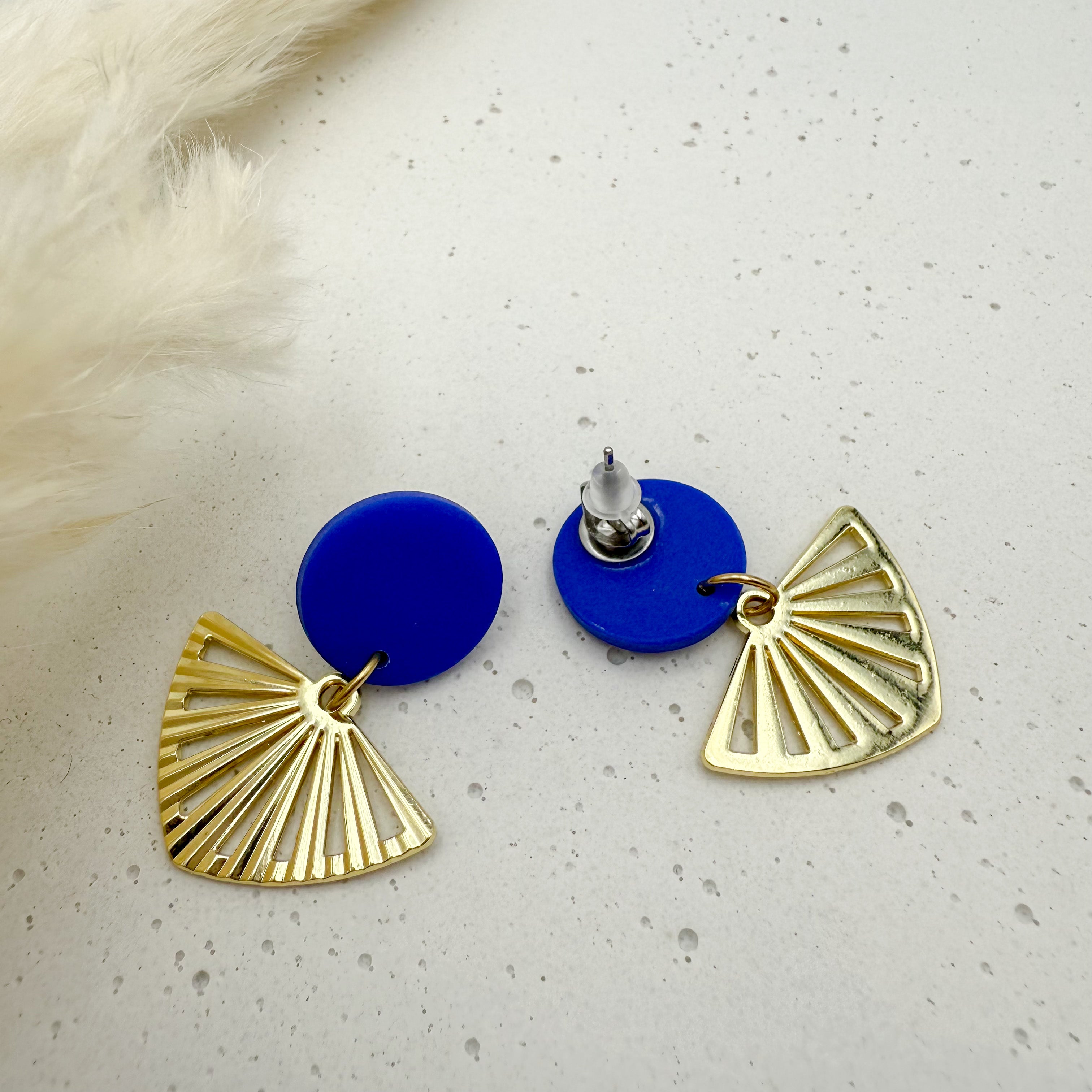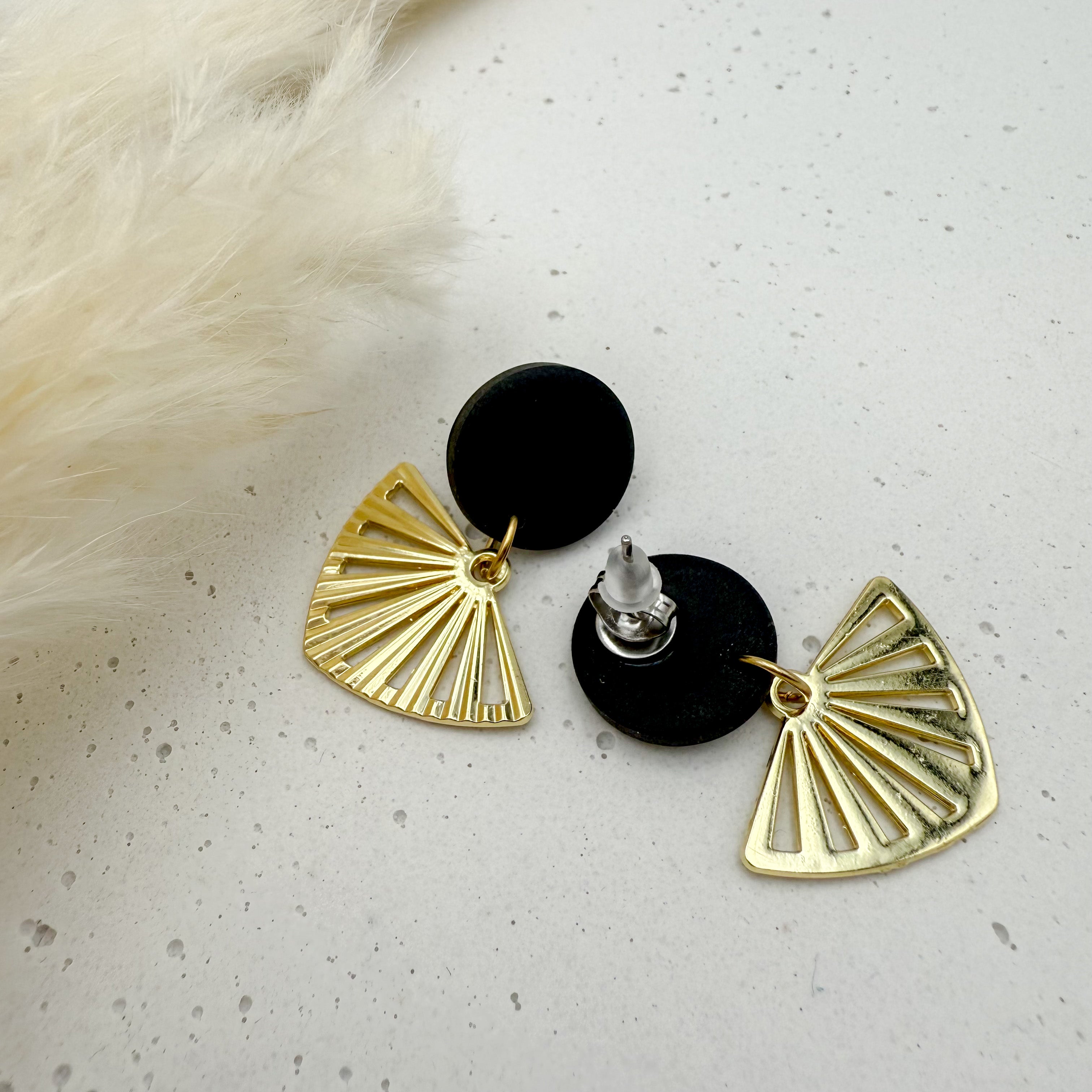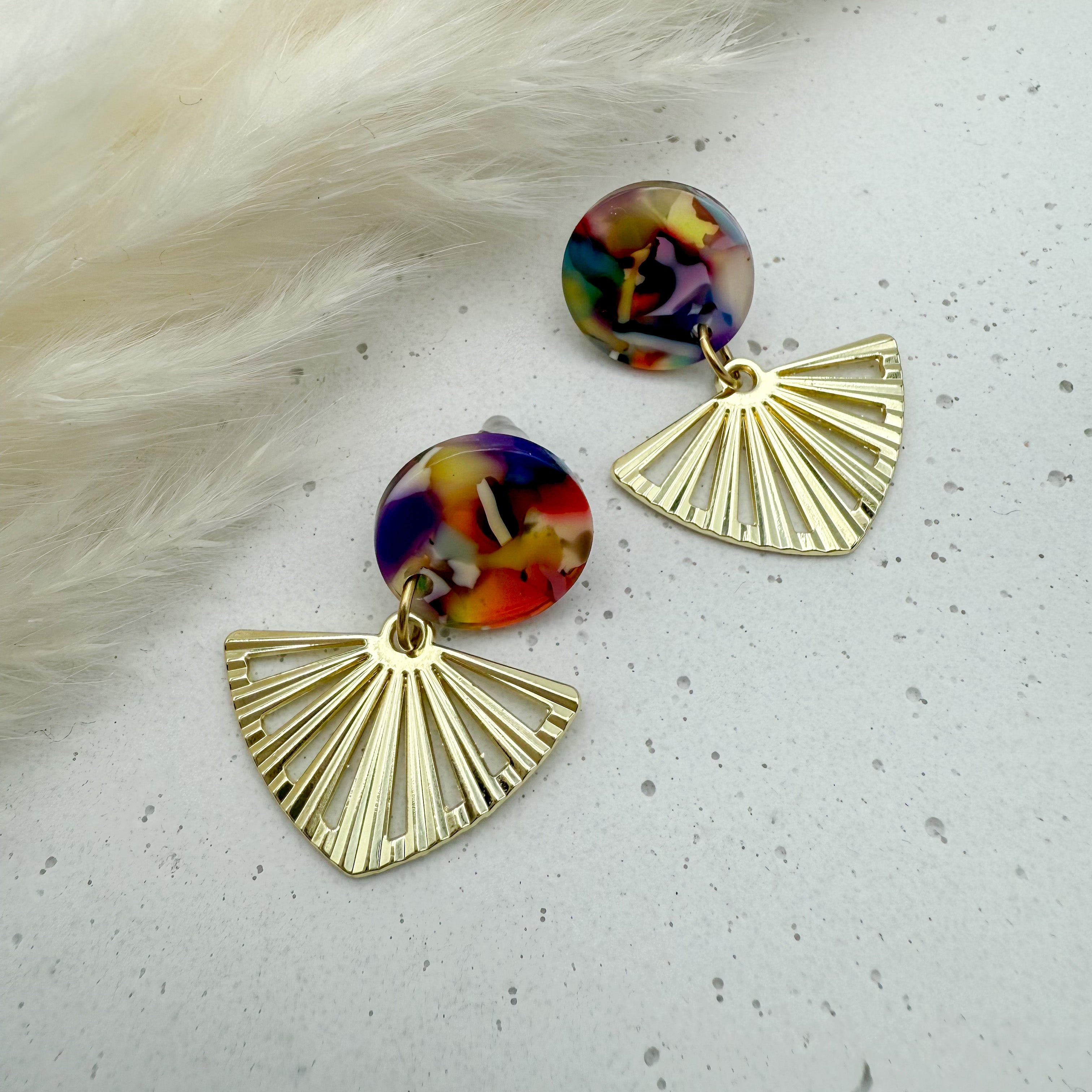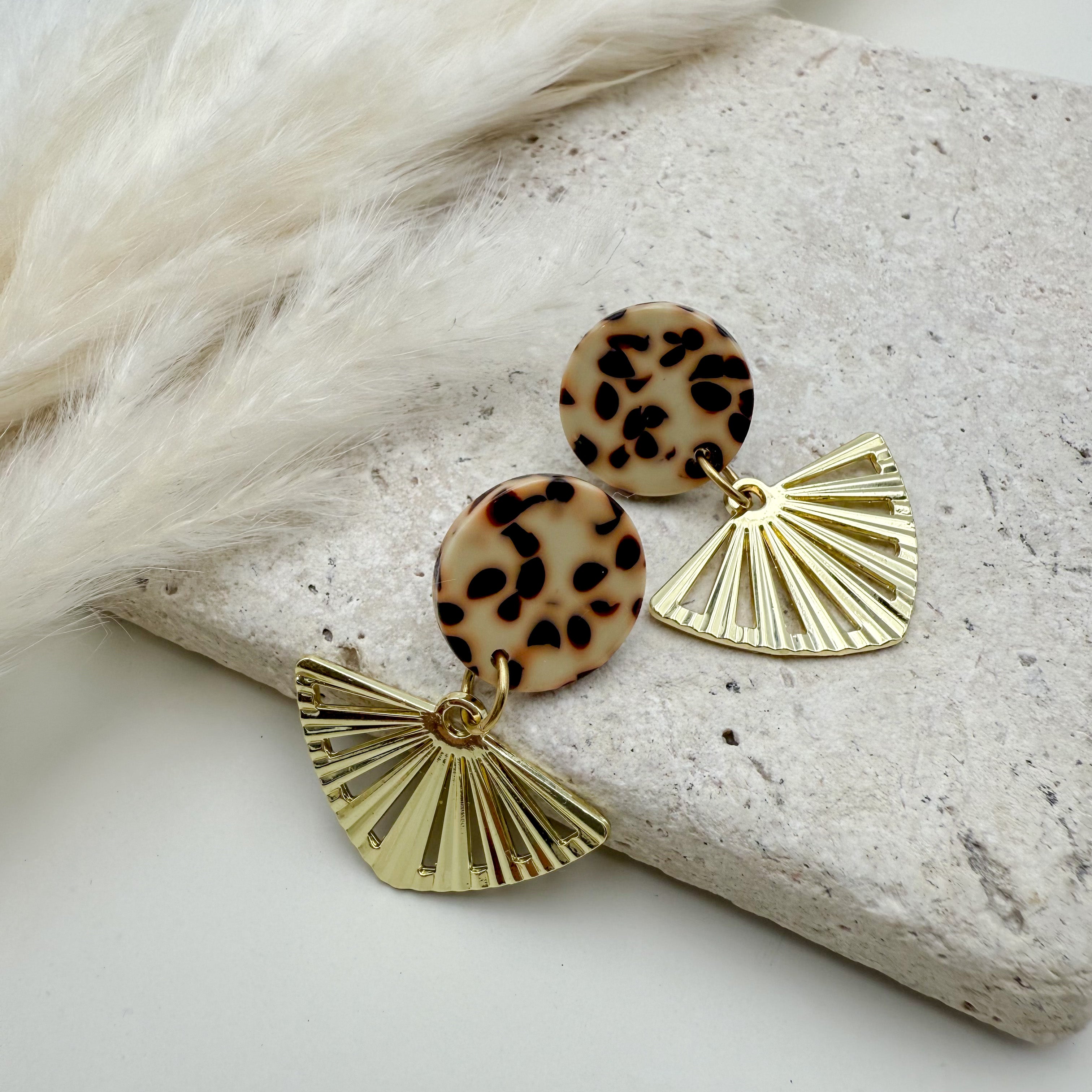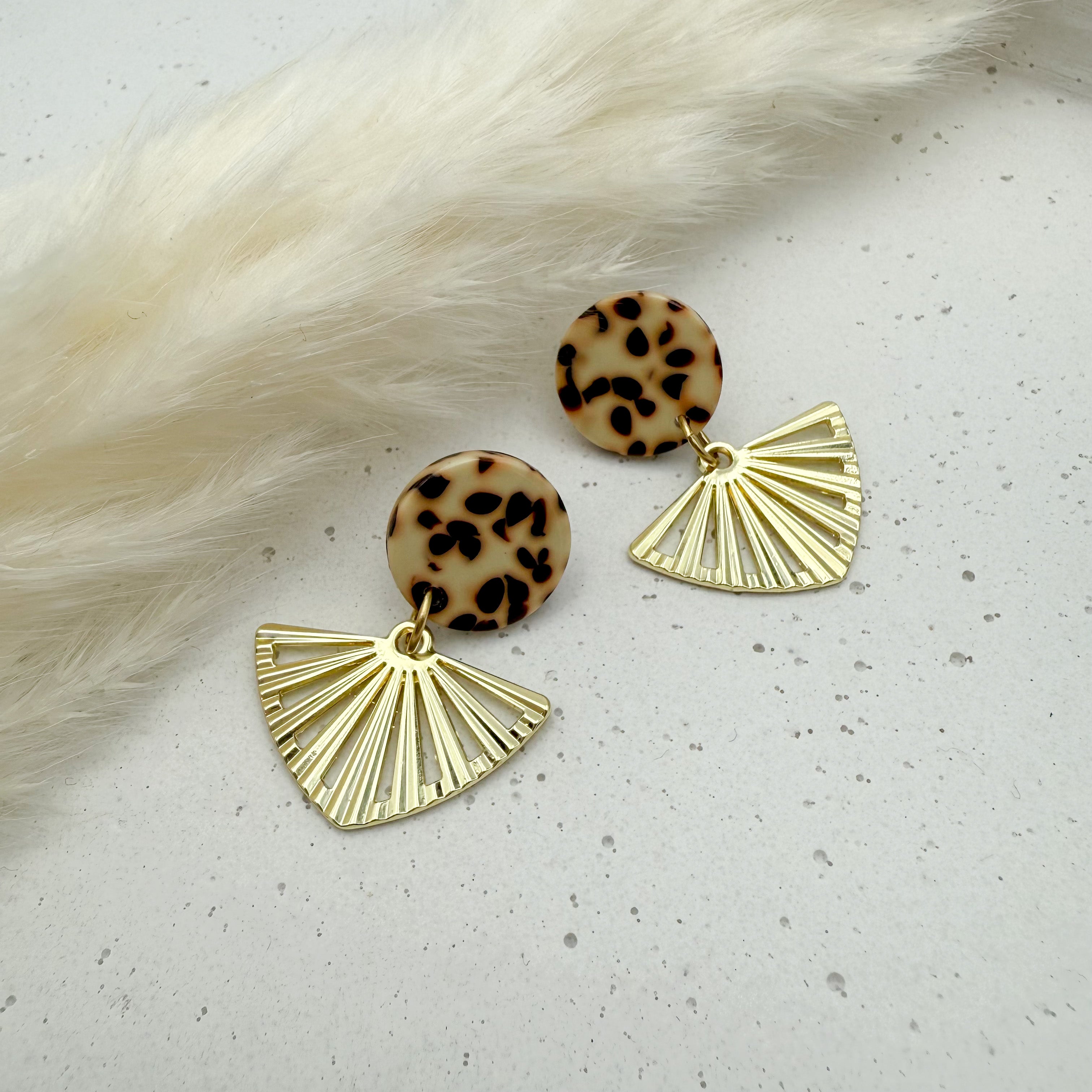 Stilvolle Ohrstecker Niva mit Kopfteil aus Acetat und Anhänger aus vergoldetem Messing von Vagabundobjects.