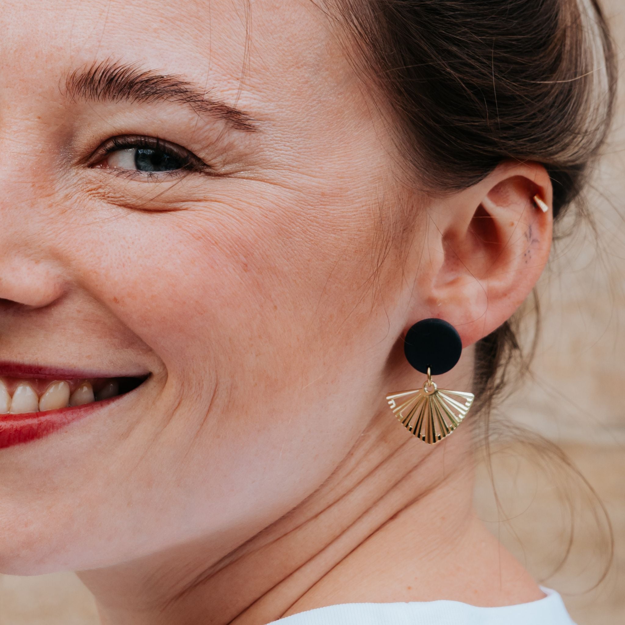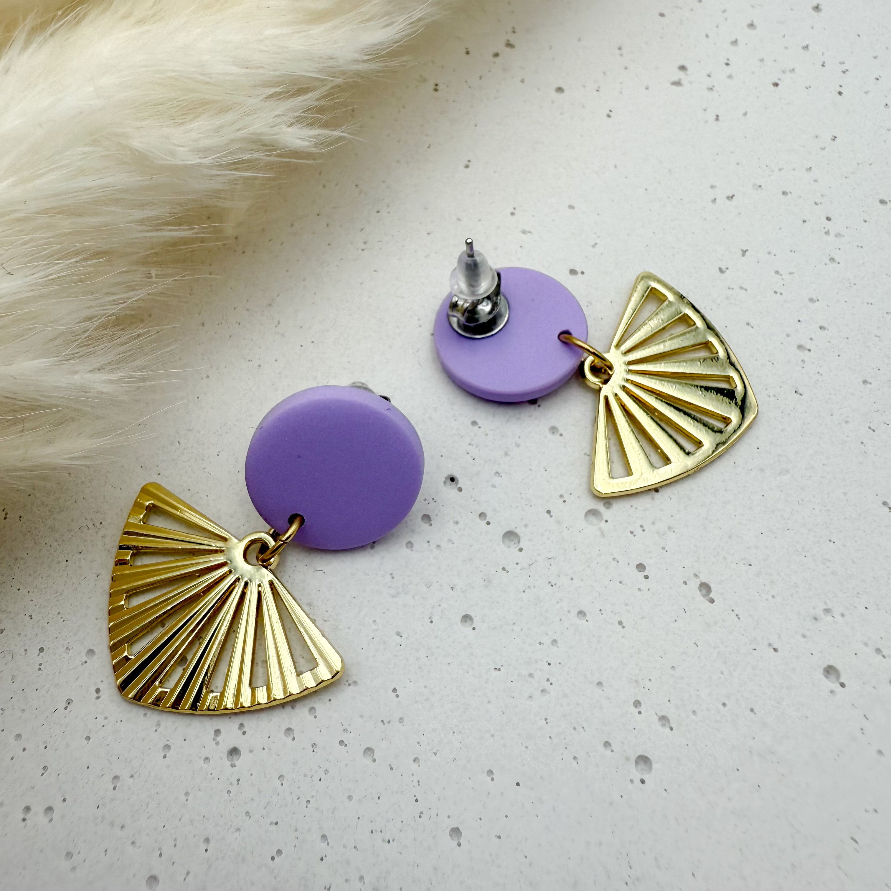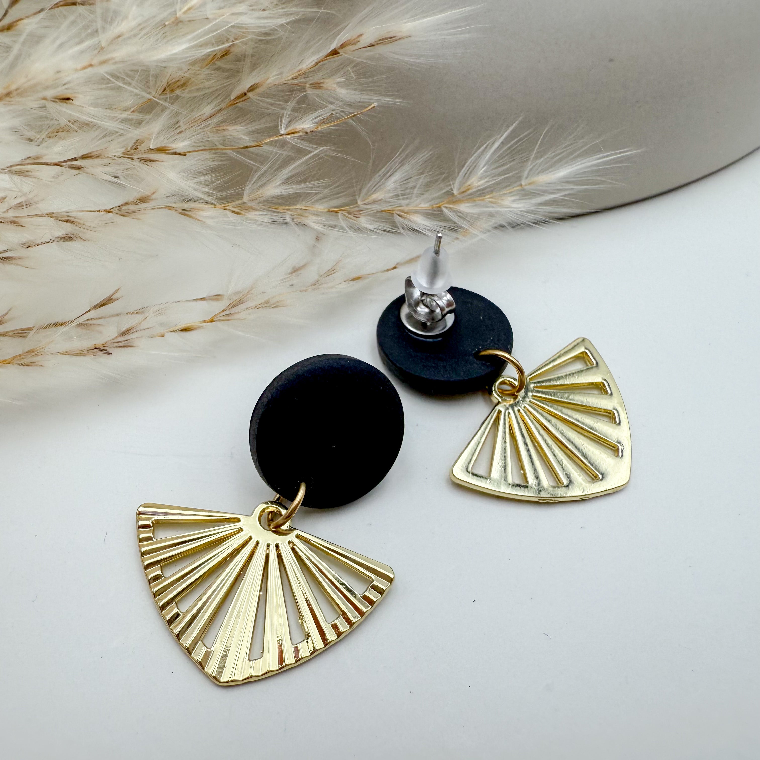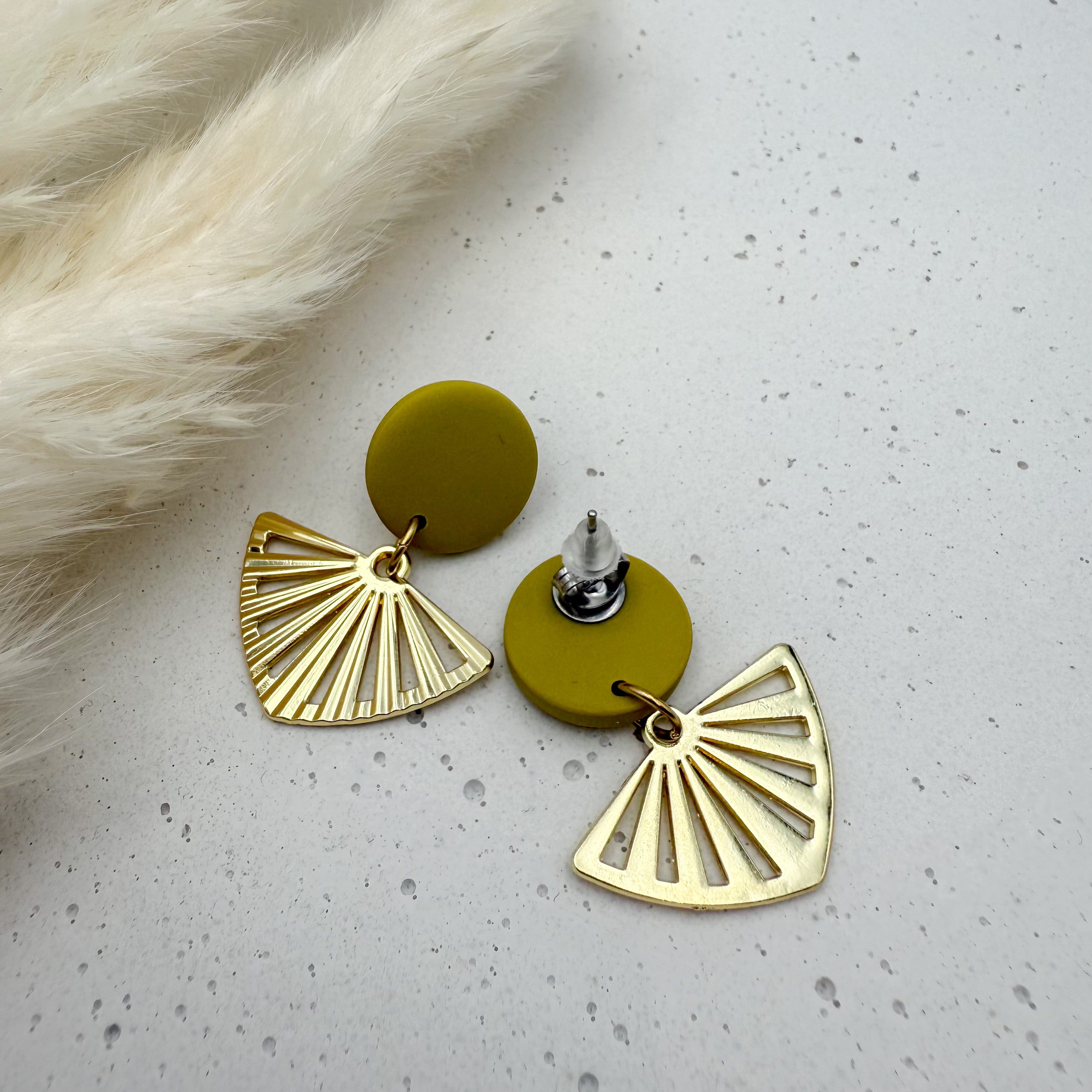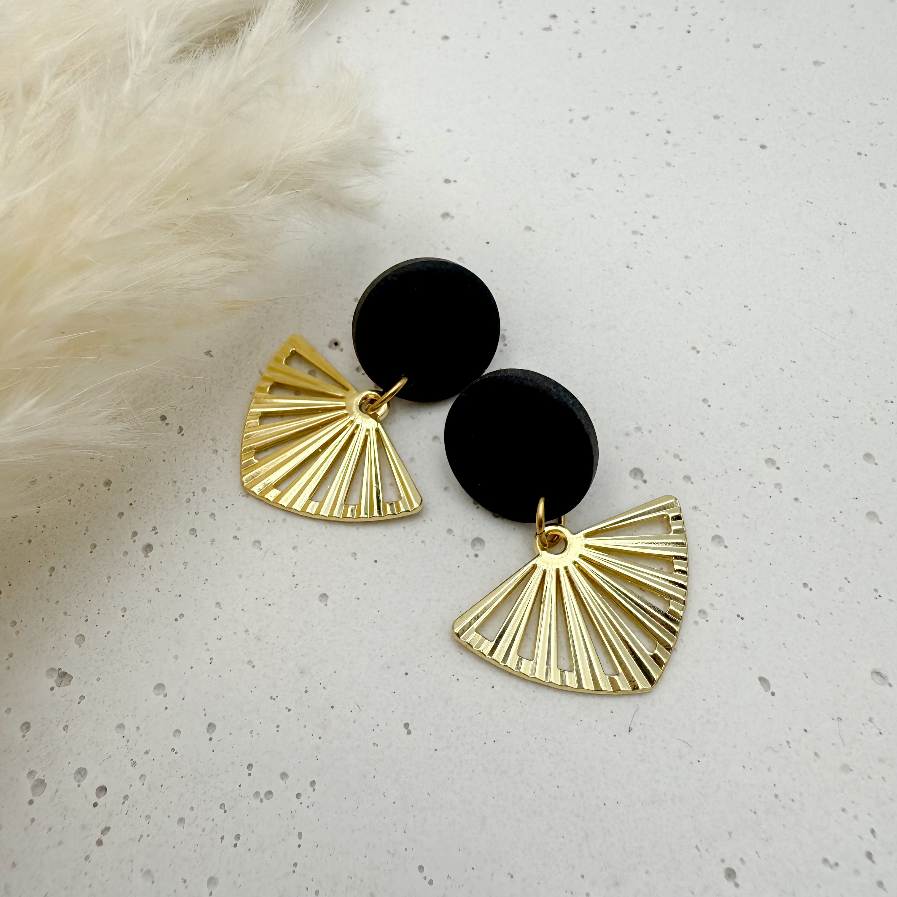 Stilvolle Ohrstecker Niva mit Kopfteil aus Acetat und Anhänger aus vergoldetem Messing von Vagabundobjects.