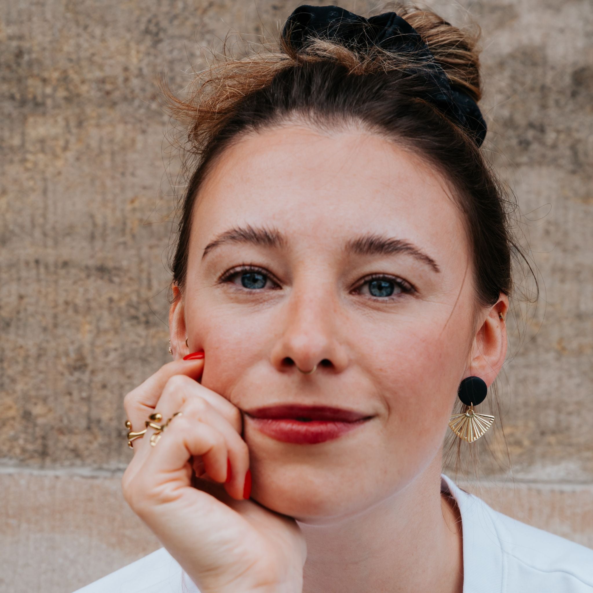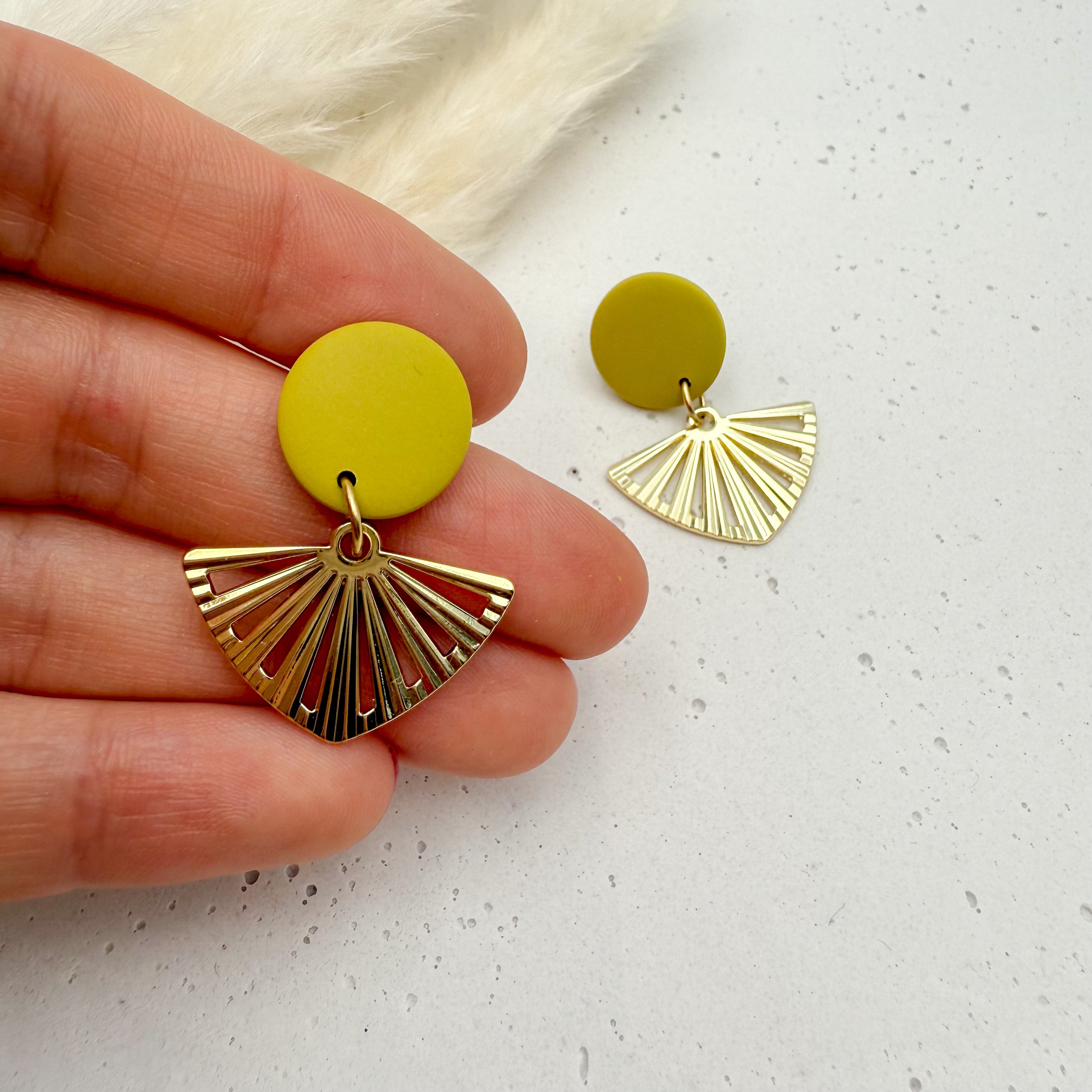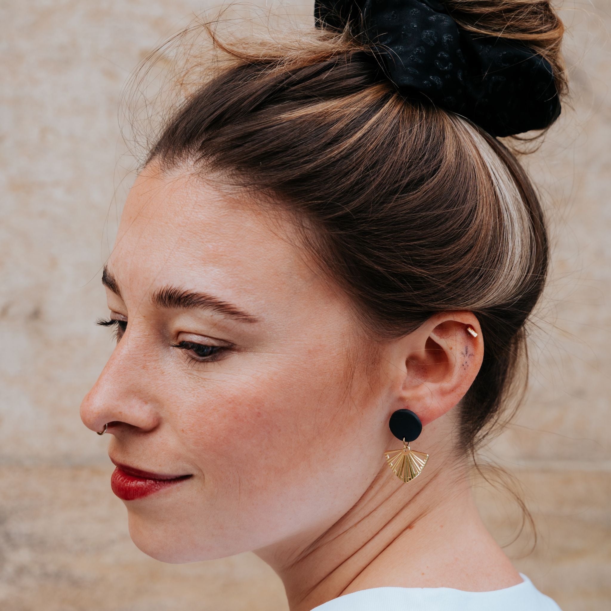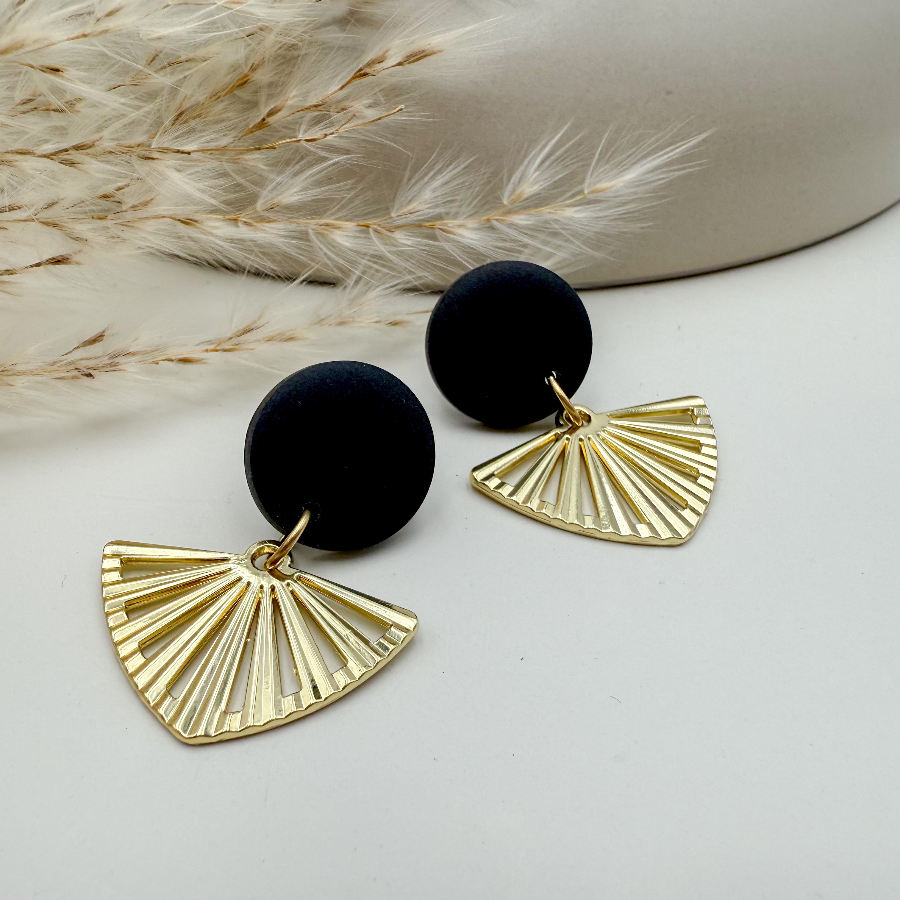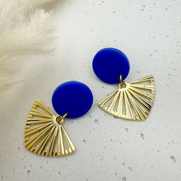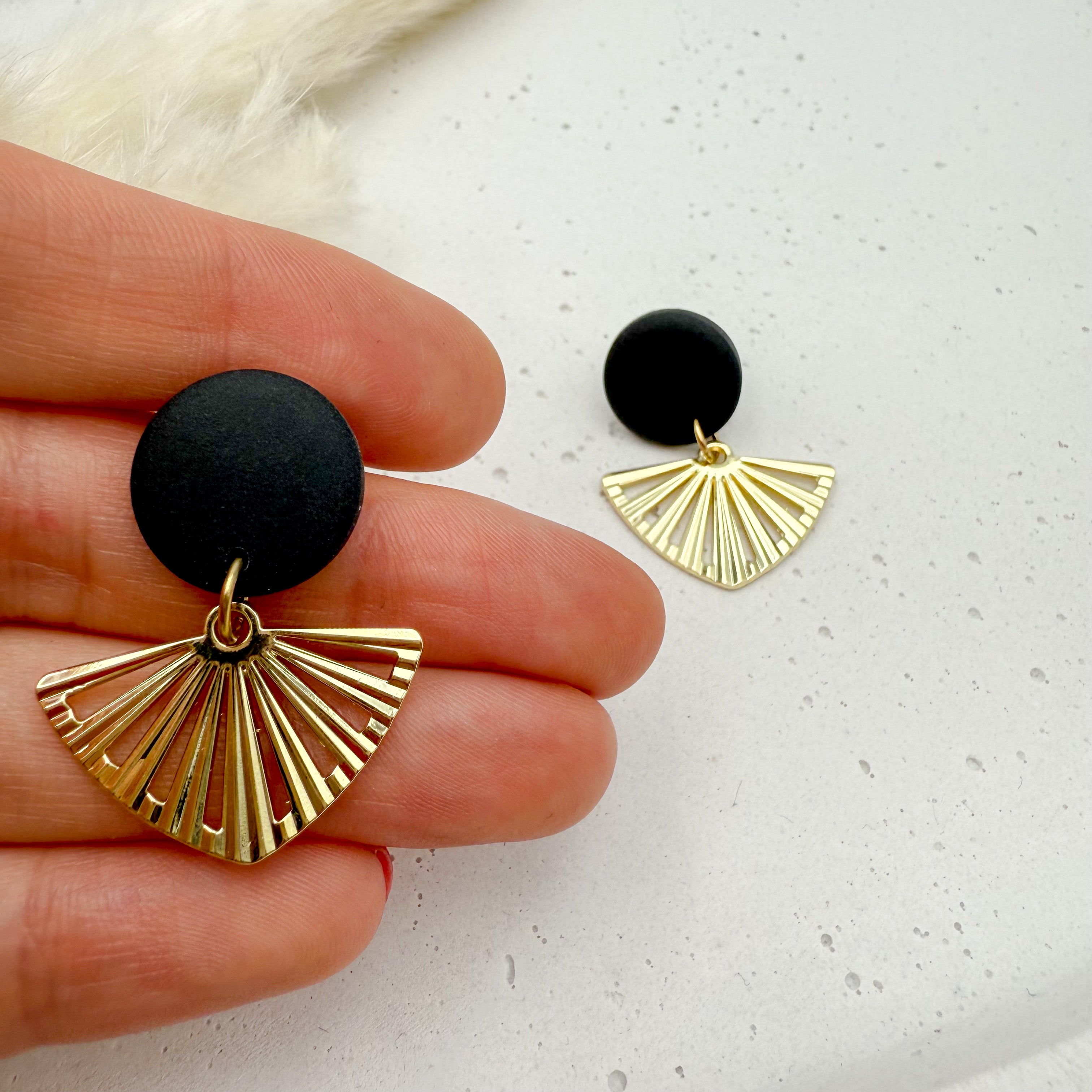 Stilvolle Ohrstecker Niva mit Kopfteil aus Acetat und Anhänger aus vergoldetem Messing von Vagabundobjects.
